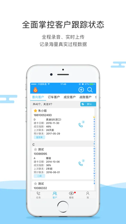 Smart360汽车销售利器,实现汽车销售全过程数据的管控、上传及共享,提升销售线索使用率,有效促进销售成单。