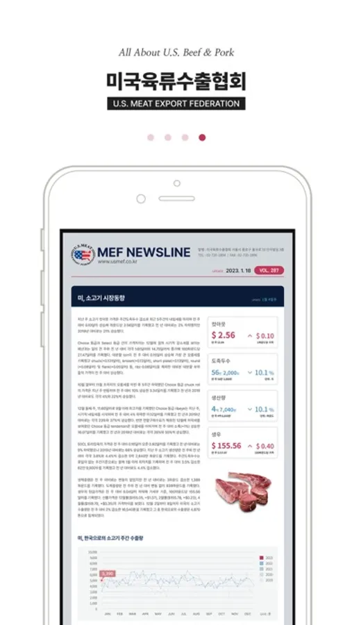 미국육류수출협회(U.S. Meat Export Federation)는 순수 곡물로 키워 세계 최고의 품질을 자랑하는 미국산 육류의 홍보를 위해 설립된 비영리 기구로 미국농무부를 비롯하여 미국 내 생산자, 비육업자, 곡물 생산자, 정육 가공업자, 수출업자 및 농축산물 관련 업체의 지원으로 운영되고 있습니다.