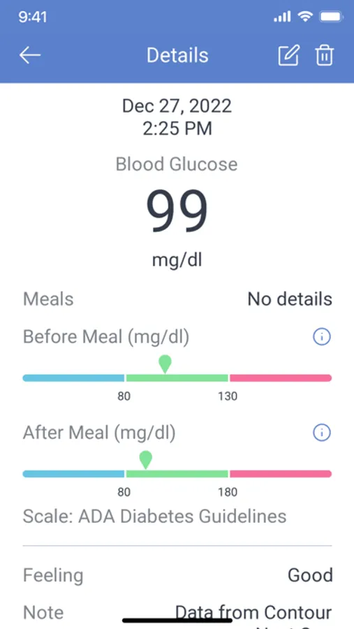 * Easy entry: the app can be set to receive data from devices automatically (the settings screen appears at pairing); alternatively, it takes just a couple of taps to add a journal entry manually.
