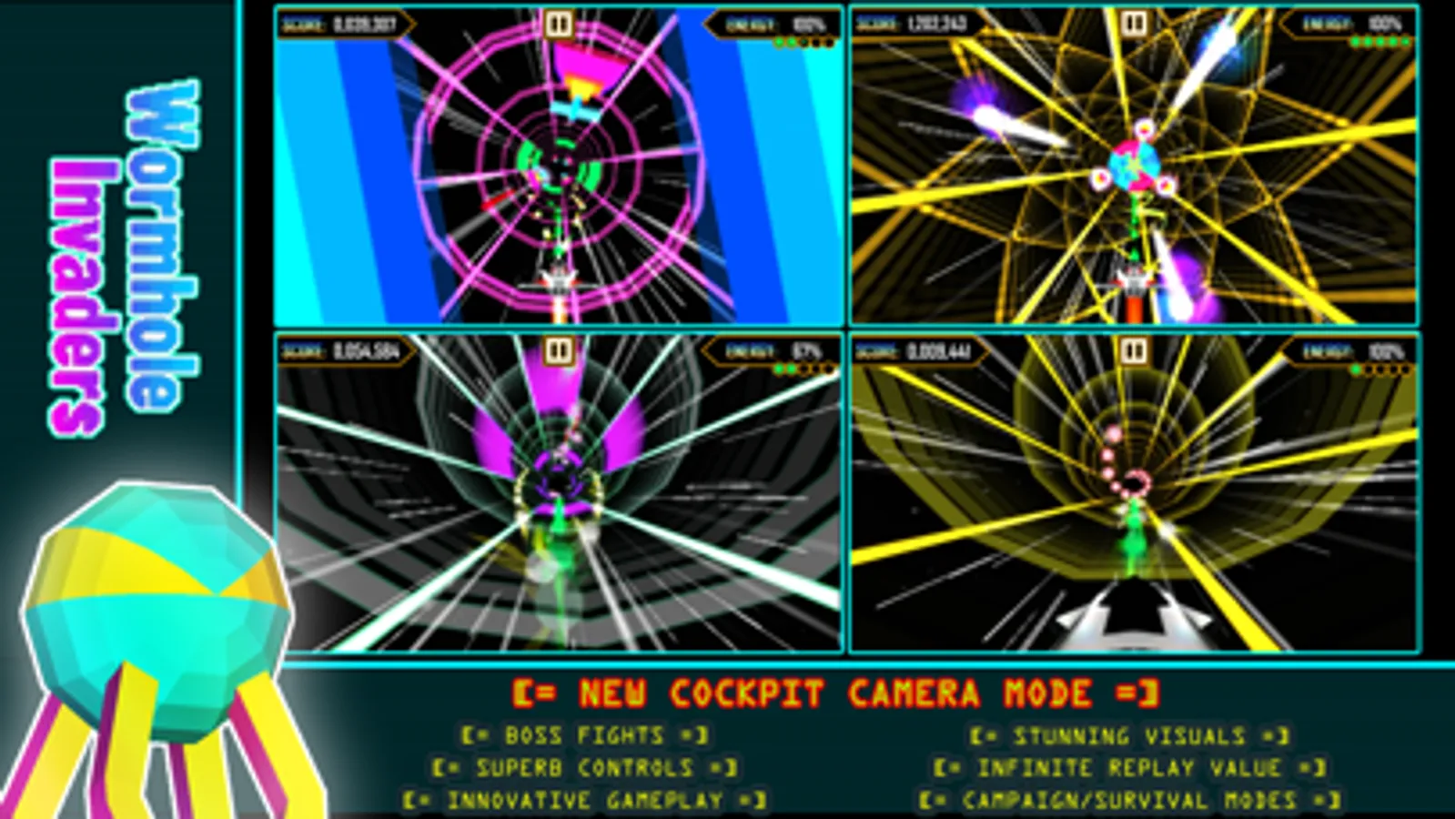 Wormhole Invaders is a fast-paced, unique 3D perspective shoot'em'up action game.