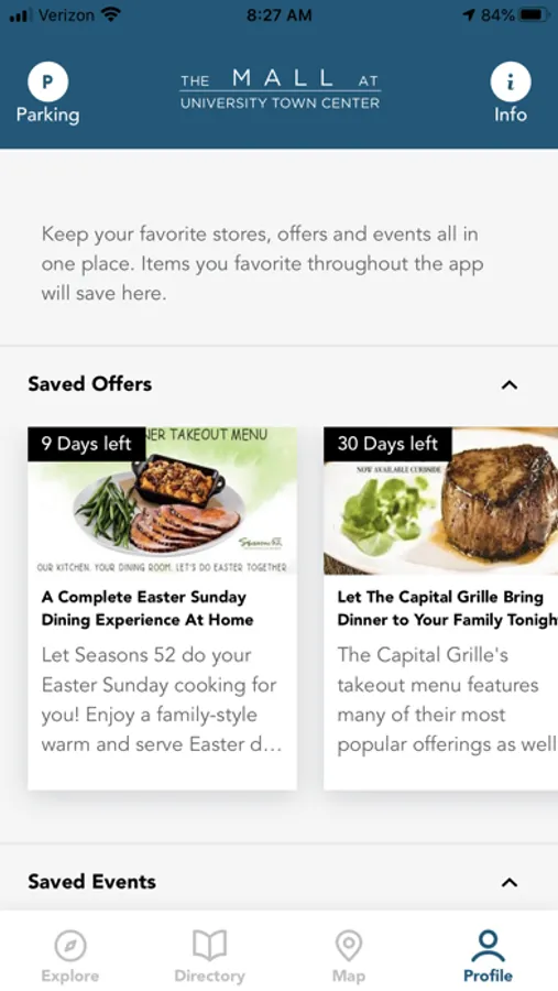 FAVORITES – Personalize your experience by selecting your favorite retailers, restaurants, offers and events.