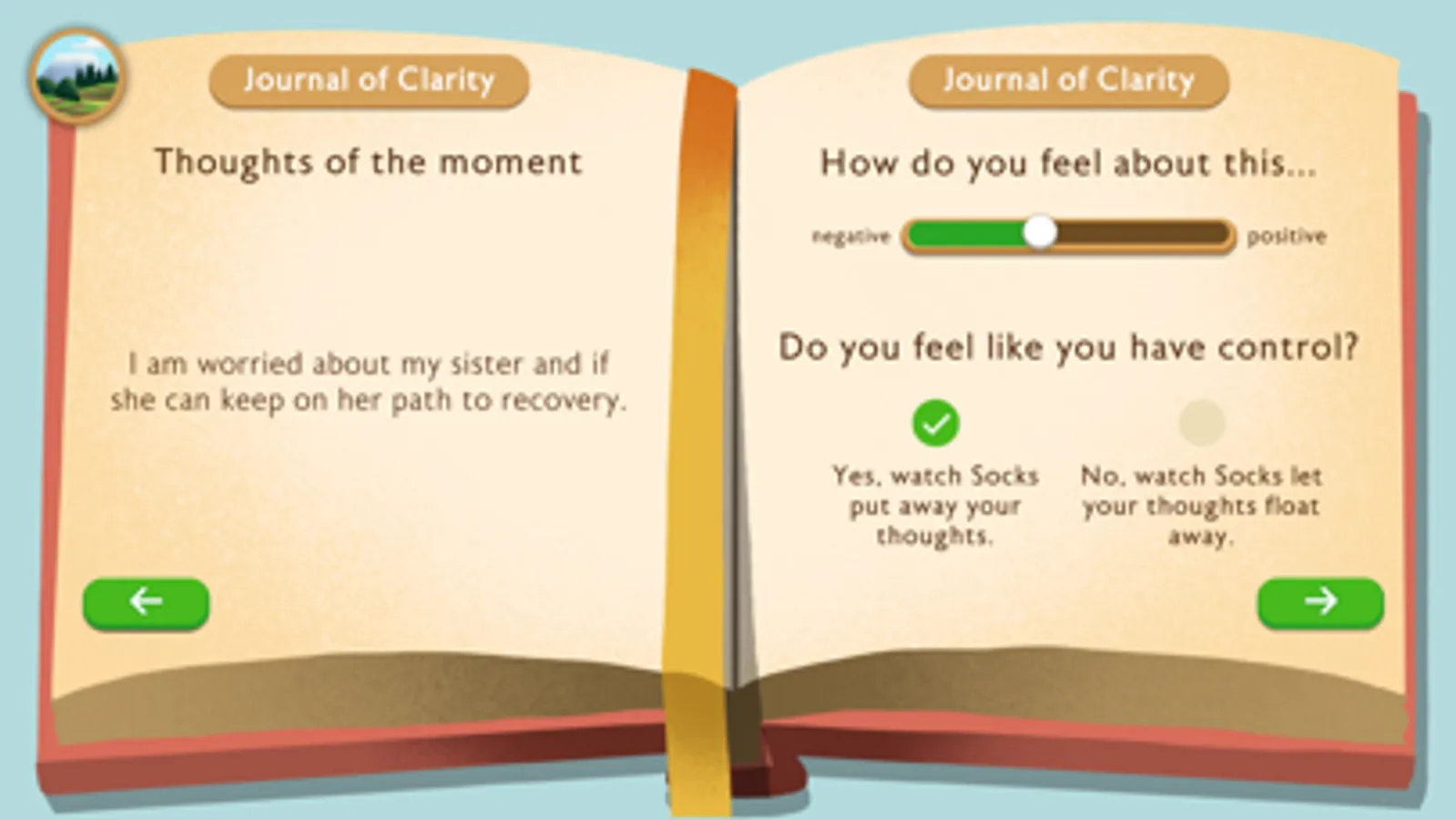 When you live alone - you have to find other ways to do things to not be lonely or bored. It is so awesome. I really like it. When I have things on my mind. The journaling is very helpful. I like how to watch Socks make things float away or put in the box. It is very intense. Keeps your mind thinking.” F, 46, PTSD, Cannabis Abuse