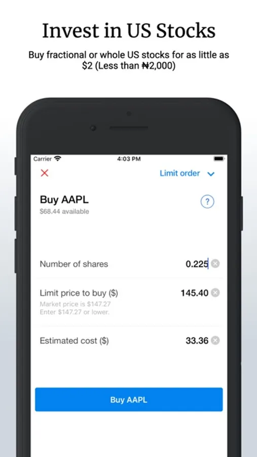 - With as little as $2 (Less than ₦2,000) you can invest in whole or fractional US stocks.
