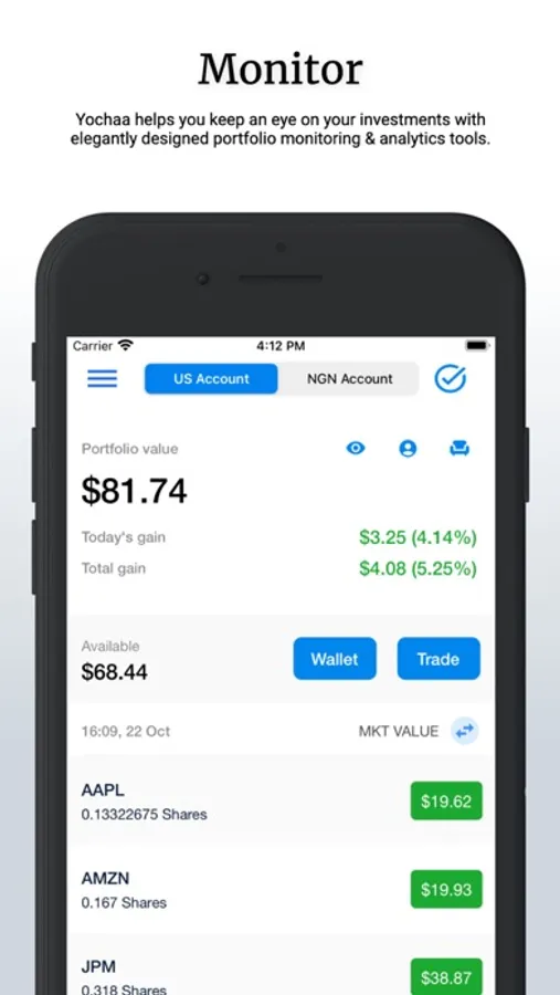 - Yochaa also gives you access to trade stocks listed on the Nigerian Stock Exchange.