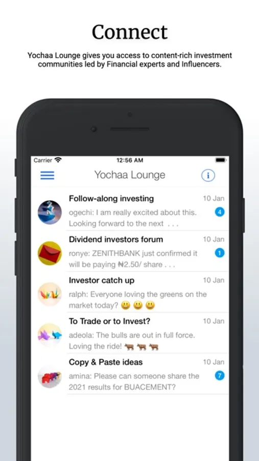 - Yochaa Lounge gives you access to content-rich investment communities led by Financial experts and influencers.