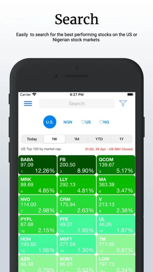 - View price charts of all US & Nigerian stock market securities over the last ten years.
