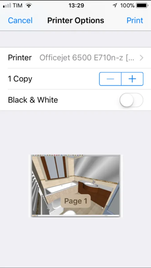 - Export to PDF file format (zoom with two fingers the print preview and share the generated PDF using the share button)