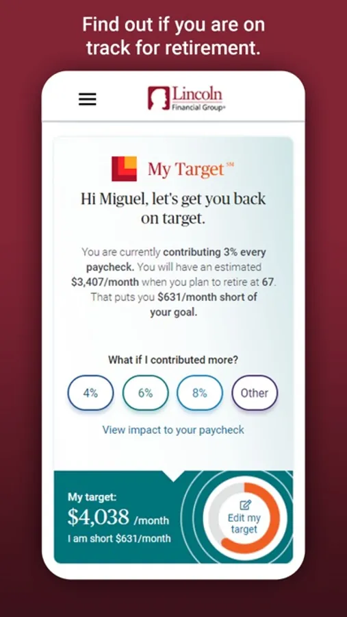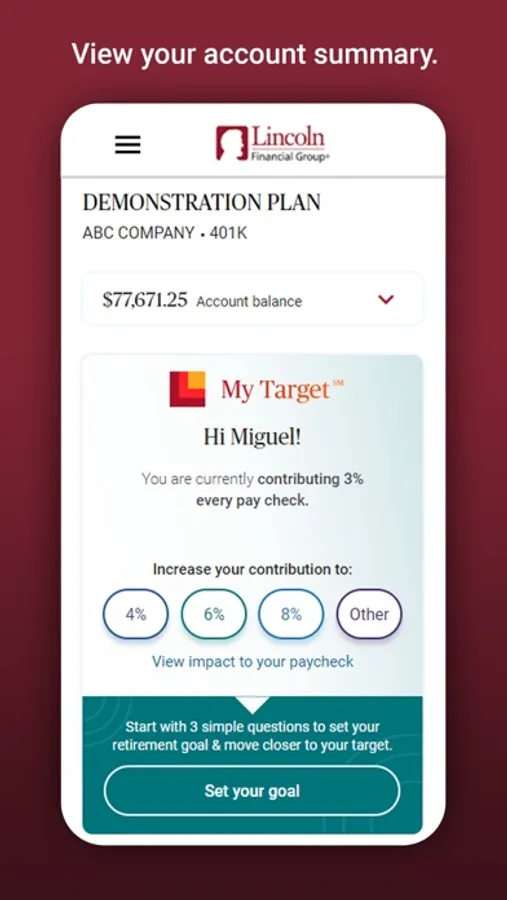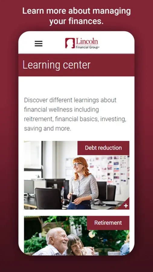 Stay on track with your financial goals using Lincoln Financial Group’s mobile and Apple Watch apps. Get easy access to retirement account balances, recent transactions and your retirement income estimate. Using the mobile app, you can also download forms and explore helpful videos, calculators and other financial resources. Visit www.LincolnFinancial.com for additional information.