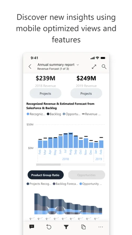 Get the full Power BI suite and never miss a beat with Power BI Desktop, the Power BI web service, and Power BI Mobile!