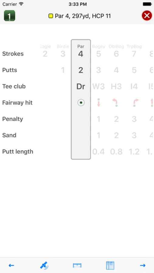 * statistics for score per par, scoring, putting rate, GIR, fairway hits