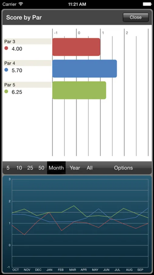 * statistics per last 5, 10, 25 or 50 rounds, per month or year