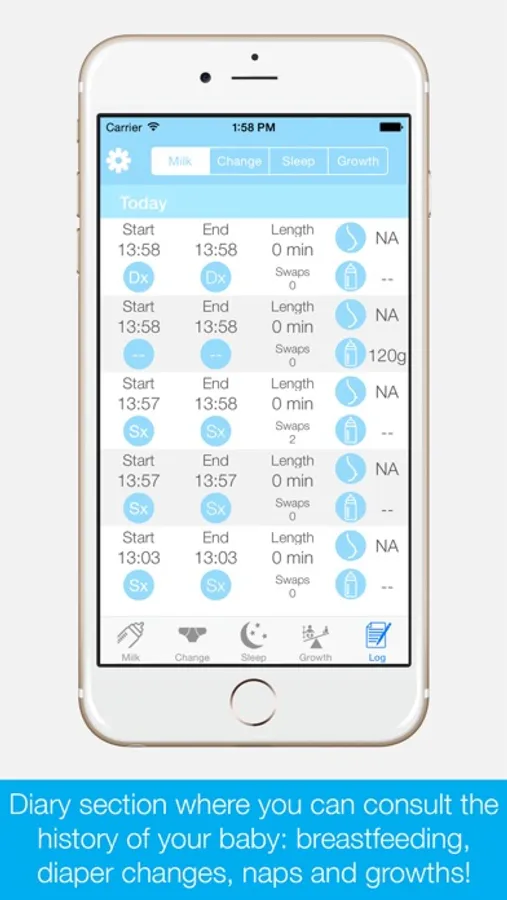 BabyDiary is a powerful yet SIMPLE tool that helps you with all the (many) daily activities related to your loved baby, like: breastfeeding, diaper change, sleep, weight and height measurement, etc...