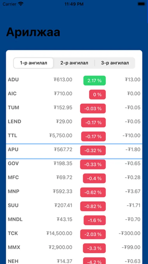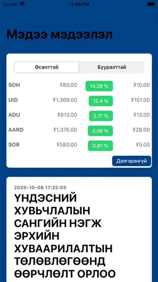 Энэхүү мобайл апп нь Монголын хөрөнгийн бирж-д арилжаалагддаг хувьцааны ханш болон бусад мэдээллийг харуулна. Та өөрийн сонирхсон хувьцаануудаар өөрийн жагсаалт бүрдүүлэх боломжтой.