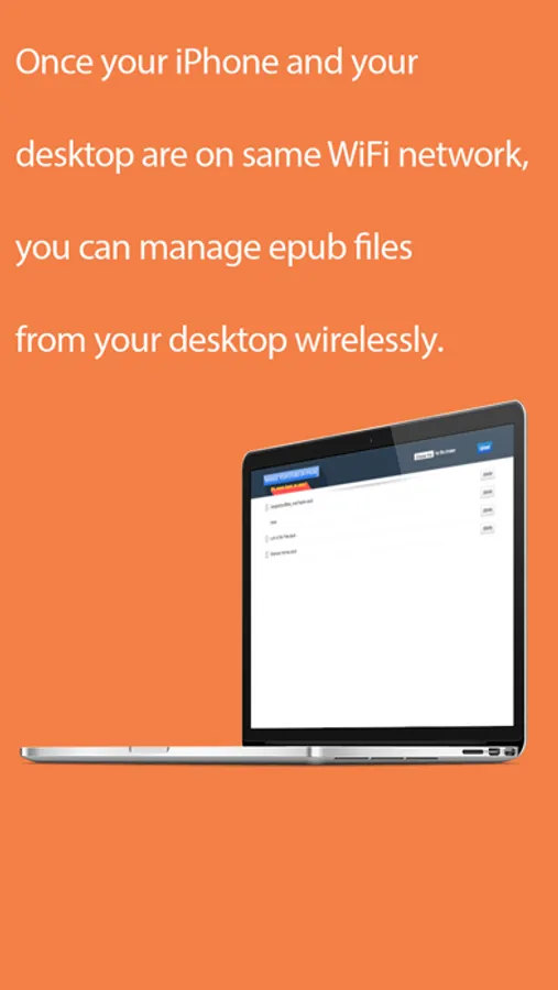 Through same WiFi network, you can visit the storage of this app from your desktop's browser by entering an URL, you can either upload or delete epub files on your iPhone from your desktop.