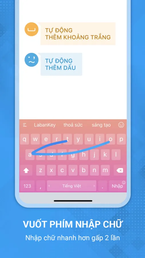 Laban Key - gõ tiếng Việt hiệu quả, không lỗi trên mọi phiên bản hệ điều hành, bao gồm iOS 16. Bàn phím có khả năng kiểm tra chính tả và gợi ý từ có độ chính xác cao. Ngoài ra, bạn có thể thay đổi màu sắc, kích thước, hình nền để có bàn phím của riêng mình.