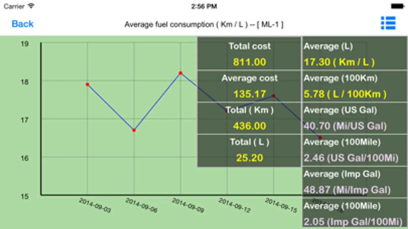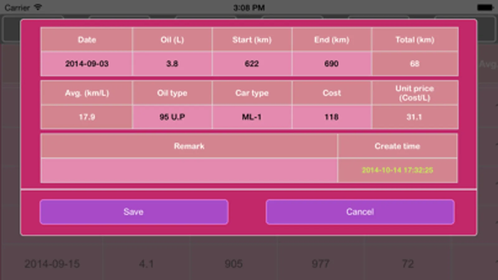 1. When input new data , immediately and automatically calculates how much the average fuel consumption and unit price.