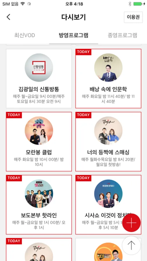 4. 프로그램: 방영 및 종영 프로그램의 예고편, 명장면, 다시보기 서비스를 이용하실 수 있습니다.