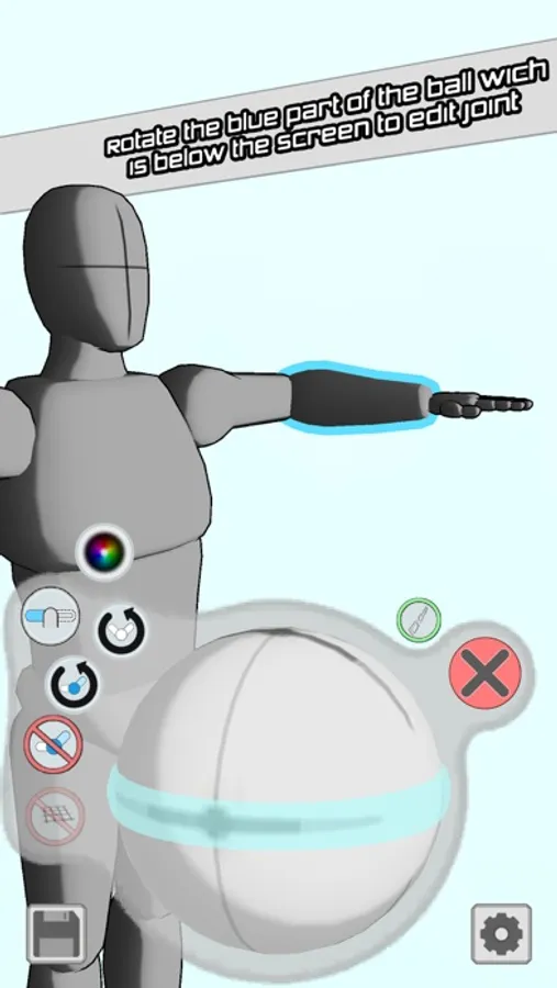 - Edit every joint to make a pose in a natural and intuitive way , You can rotate the blue part of the ball which is below the screen to edit the joint ,it is easy to use
