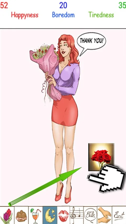 Let the character to reach an high level of happiness and you will access to a next level of intelligence, so she will be able to understand more things and having more interaction.