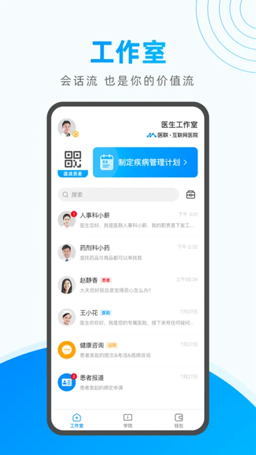 「多点执业」在线问诊、高效开方、专业医助服务,帮助医生提升诊疗效率,塑造个人品牌,实现阳光收入,触达更多患者。