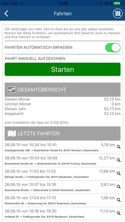 - Cars: How long do you sit in the car and are exposed to the effects of electrosmog? With the car tracker you can track your time in the car and your driven kilometers automatically or manually. Get an overview of how much time you spend in the car on a daily, weekly and monthly basis.