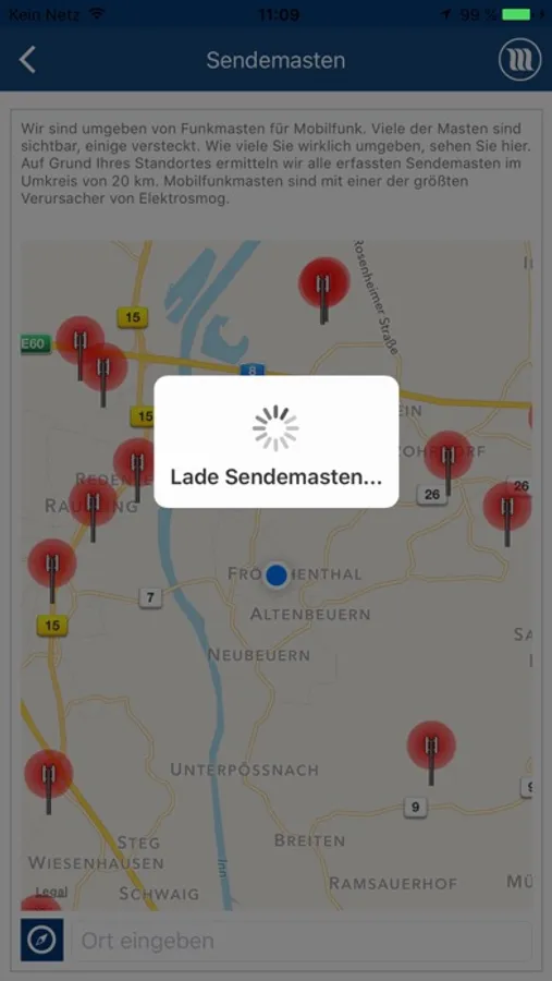 - Mobile phone masks: At a glance you can see how many mobile phone masts are around you. You can also enter a location and search for cell towers around that location. The function is currently available for Germany, Austria and Switzerland.