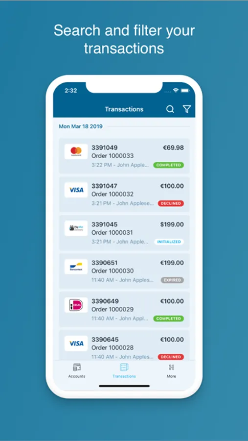 With MultiSafepay Control you are able to access your payments data from anywhere at anytime. You can easily search for a specific transaction or create filters to find the transactions requested.