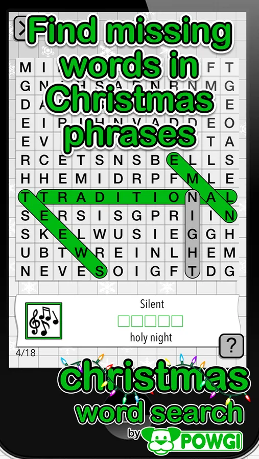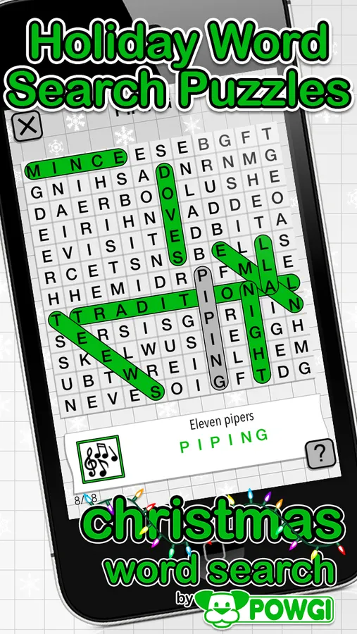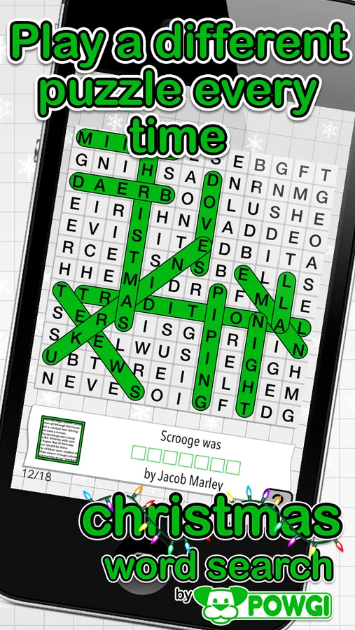 Complete the phrase shown by finding the missing word in the grid. There are hundreds of seasonal phrases, including festive songs, holiday food and Christmas books and movies. Every puzzle is different!