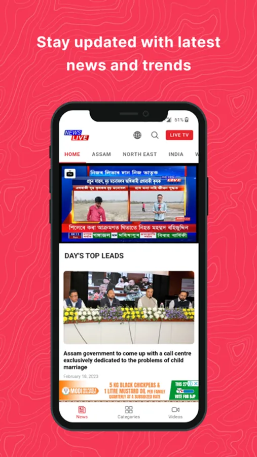 News Live is a 24 Hours Satellite TV Channel from the North Eastern region of India having its headquarters in Guwahati. The first fully automated News Channel of the region is a dream project of Pride East Entertainments Pvt Limited. Launched on the 21st January 2008, the Channel has become one of the favorites among the viewers of North East.