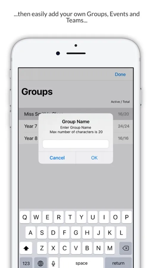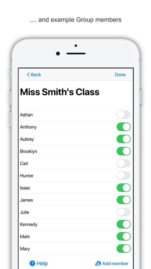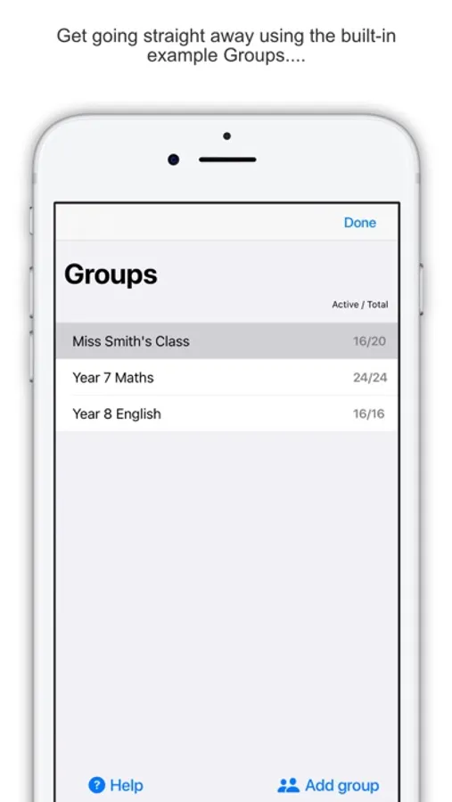 The app helps with the entry of multiple Groups (Classes etc.) and Group Members (Students etc.) by allowing the teacher to import Groups and Group members from either a text file or a CSV file. You can import tens or even hundreds of names in one go!