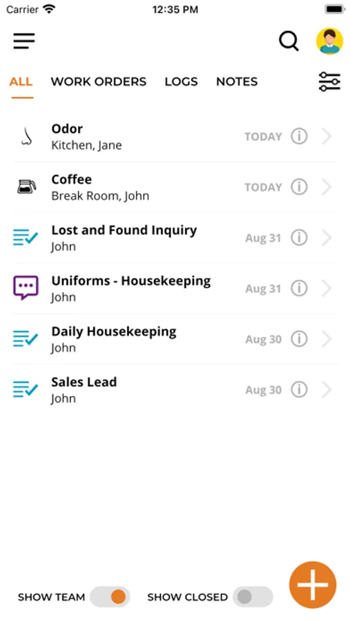 - One-tap functionality to quickly open Work Orders and Tasks that sends immediate notification to assigned staff members