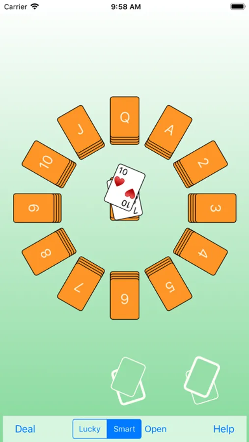Smart Clock Solitaire is a fun type of solitaire made even better! You can choose to play an easy or more challenging game by choosing the mode you want to play: Lucky or Smart.