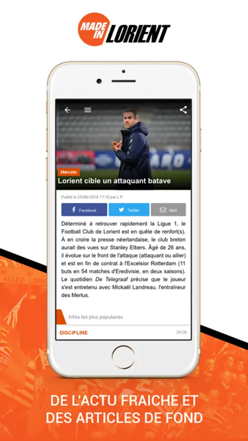 Suivez toute l'info du FCL gratuitement sur votre mobile, grâce à l'application Foot Lorient (Infos, Analyses, Interviews, Mercato, Résumés de matchs).