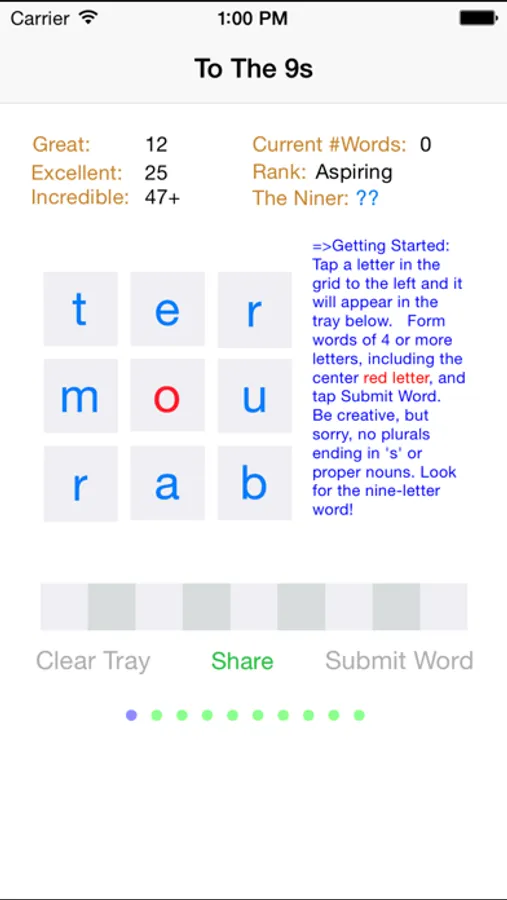 •Tap any letter in the 3 x 3 matrix to send it to the tray below.