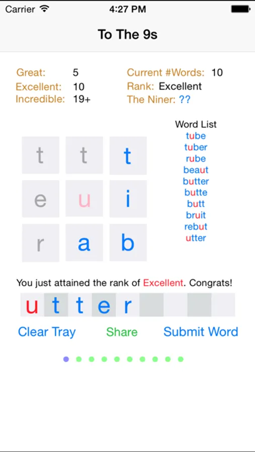 •Tap “Clear Tray” to return all letters to the matrix.