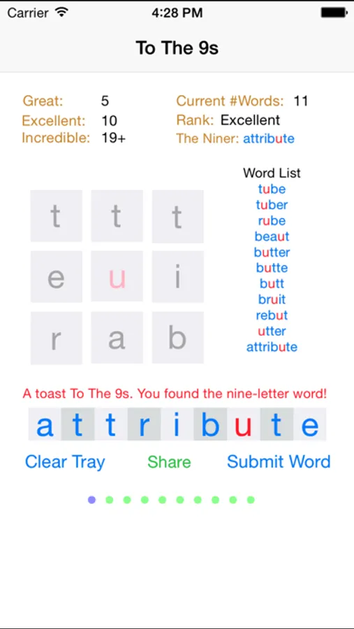 •Ready to hazard a guess? Tap “Submit Word”.