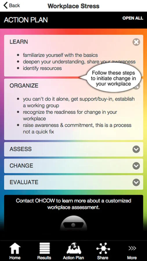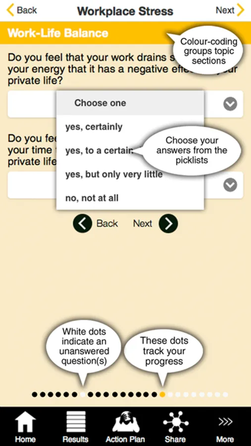 Individual workplace stress surveys via this App are meant for educational purposes only