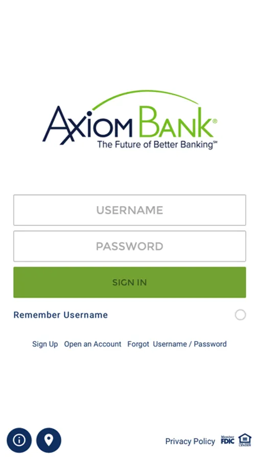 To use Axiom Mobile Banking, contact your branch for an activation code to start the enrollment process, then use your online banking credentials to log in and use the app. Wireless carrier data usage rates may apply. Axiom Bank is committed to protecting your privacy and security. Visit www.axiombanking.com for more information.