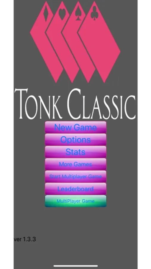 Tonk, also known as Tunk is a kind of knock rummy game. A standard 52 card deck is used, without jokers. The cards have values as follows: picture cards count 10 points, aces count 1 point and other cards count face value.