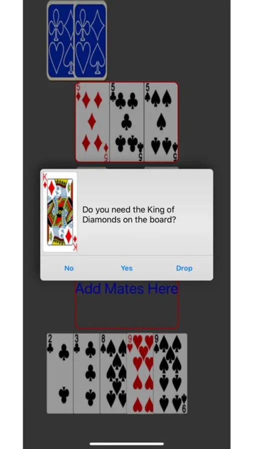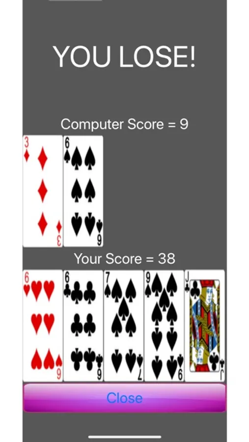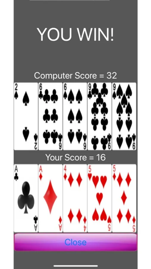 The aim is, by drawing and discarding, to form your cards into spreads, which can be books of 3 or 4 equal ranked cards or runs of 3 or more cards in suit, or to dispose of your cards by adding them to existing spreads (Hitting). You win if you manage to get rid of all of your cards, or if you have the lowest value of unmatched cards when someone stops the play.