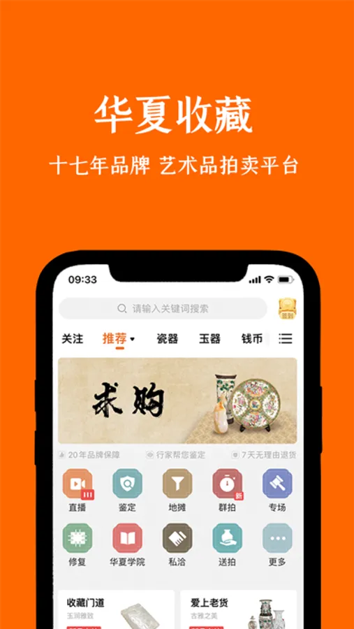 收藏品行业,怕买到假货。——不怕!华夏收藏为您把好关卡,专场的拍品必须通过审核才能进行拍卖。同时欢迎打假斗士与我们一起净化华夏收藏平台。