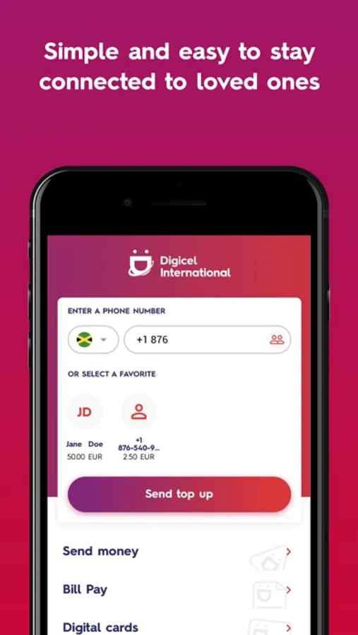 The Digicel International app puts the convenience of our innovative Mobile Top Up & Recharge in the palm of your hand. Enjoy exclusive offers with the Digicel International app for you to stay connected with your loved ones in the Caribbean, Central America, and South Pacific.