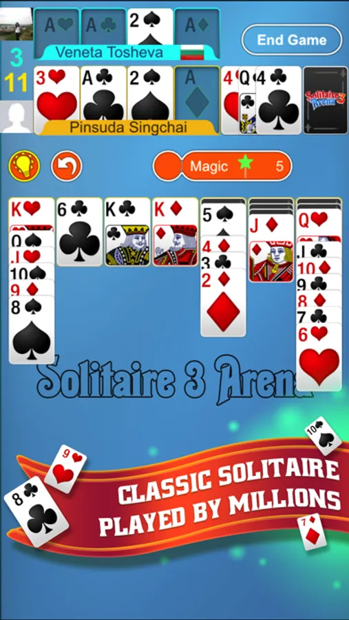 Play #1 Classic Solitaire/Klondike Solitaire/Patience Game! Solitaire Arena 3 offers exciting, thrilling, and challenging matches with additional power-ups to maximize your chances at winning.