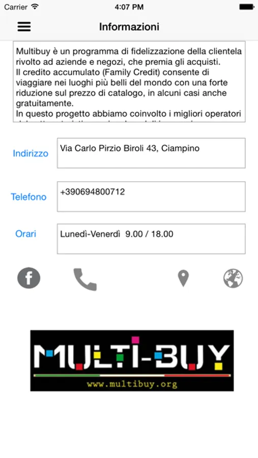 L’App ufficiale del circuito nazionale "Multibuy". Uno strumento di comunicazione e interazione innovativo che ti consente di essere sempre aggiornato, ovunque tu vada, su prodotti e servizi acquistabili nell'ambito del circuito, e che consentono di incrementare i crediti del programma fedeltà. Trovi, inoltre, le migliori occasioni e le offerte last-minute da cogliere al volo, direttamente dal tuo dispositivo mobile