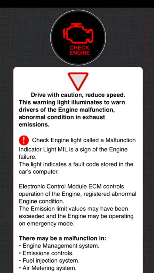 Note: the app does not contain diagnostic trouble codes.