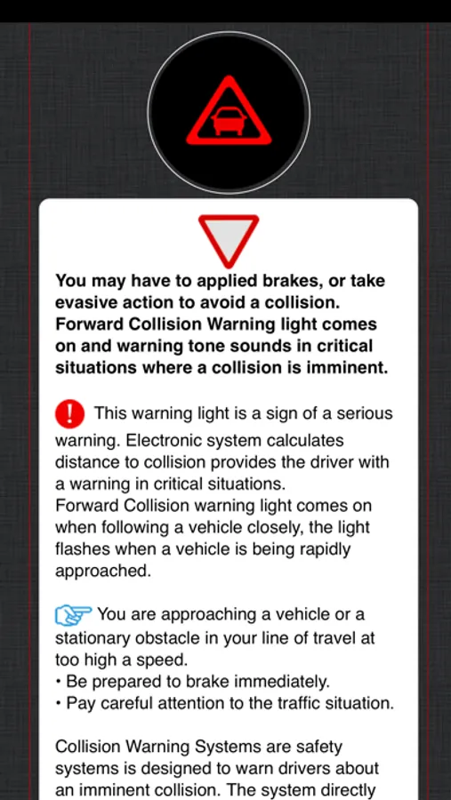 App features Ford warning lights and dashboard symbols for all Ford models, includes a detailed description and an explanation.