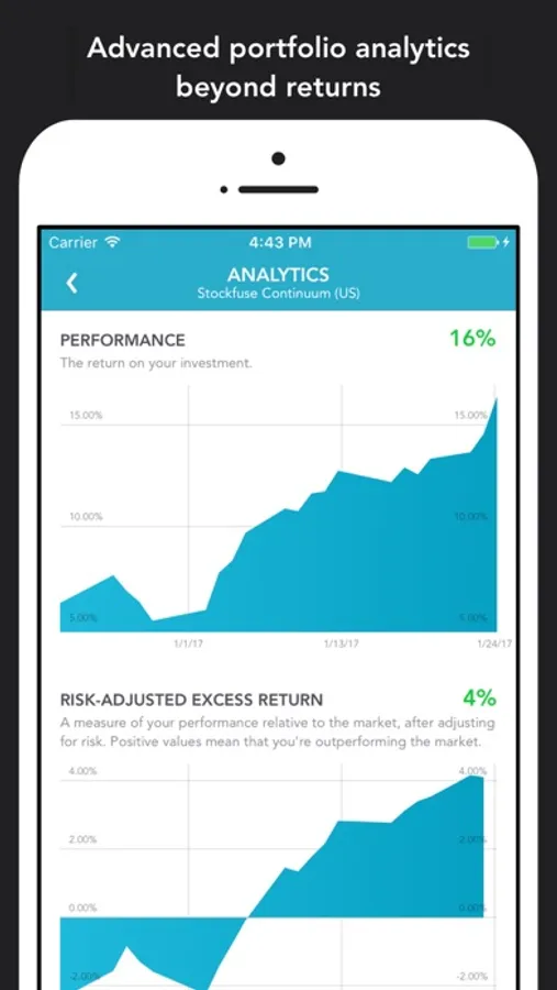 • Stockfuse provides more than just your returns. We provide a range of advanced portfolio analytics, including Sharpe ratio, risk-adjusted excess returns, even Value-at-Risk!