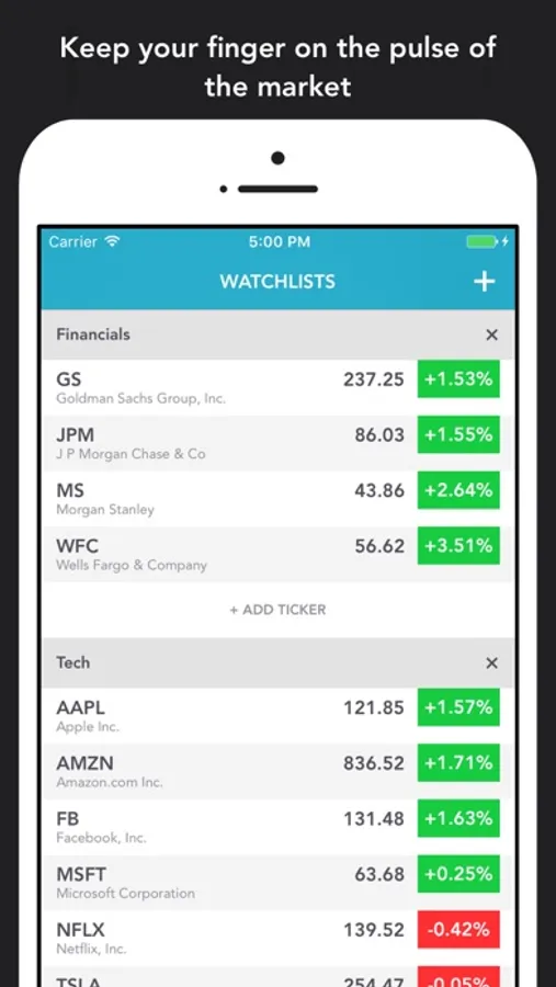 • You can create multiple watchlists to keep track of securities you’re interested in.