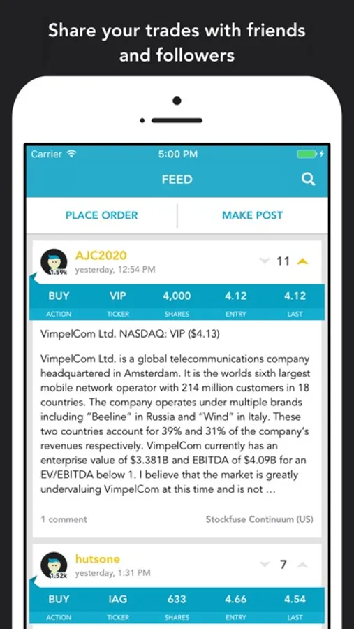 • It’s easy to comment on your peers’ trades, fostering social engagement and feedback on your trades.