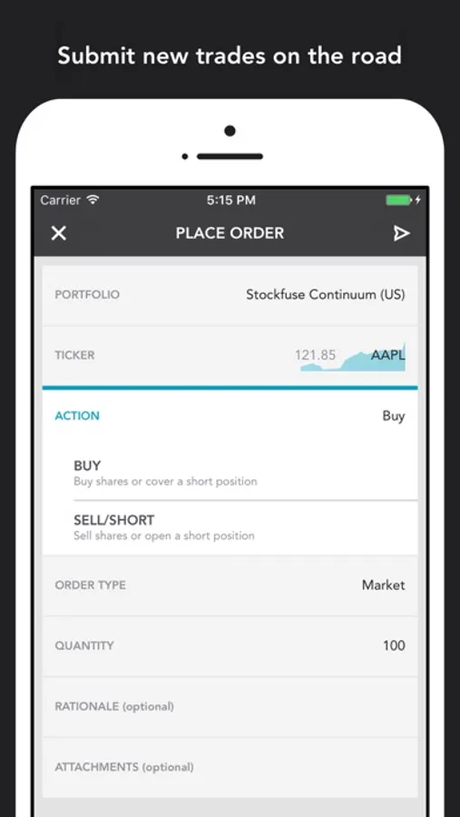 • Stockfuse Chat lets you easily discuss trade ideas and talk about the biggest market news in real time.